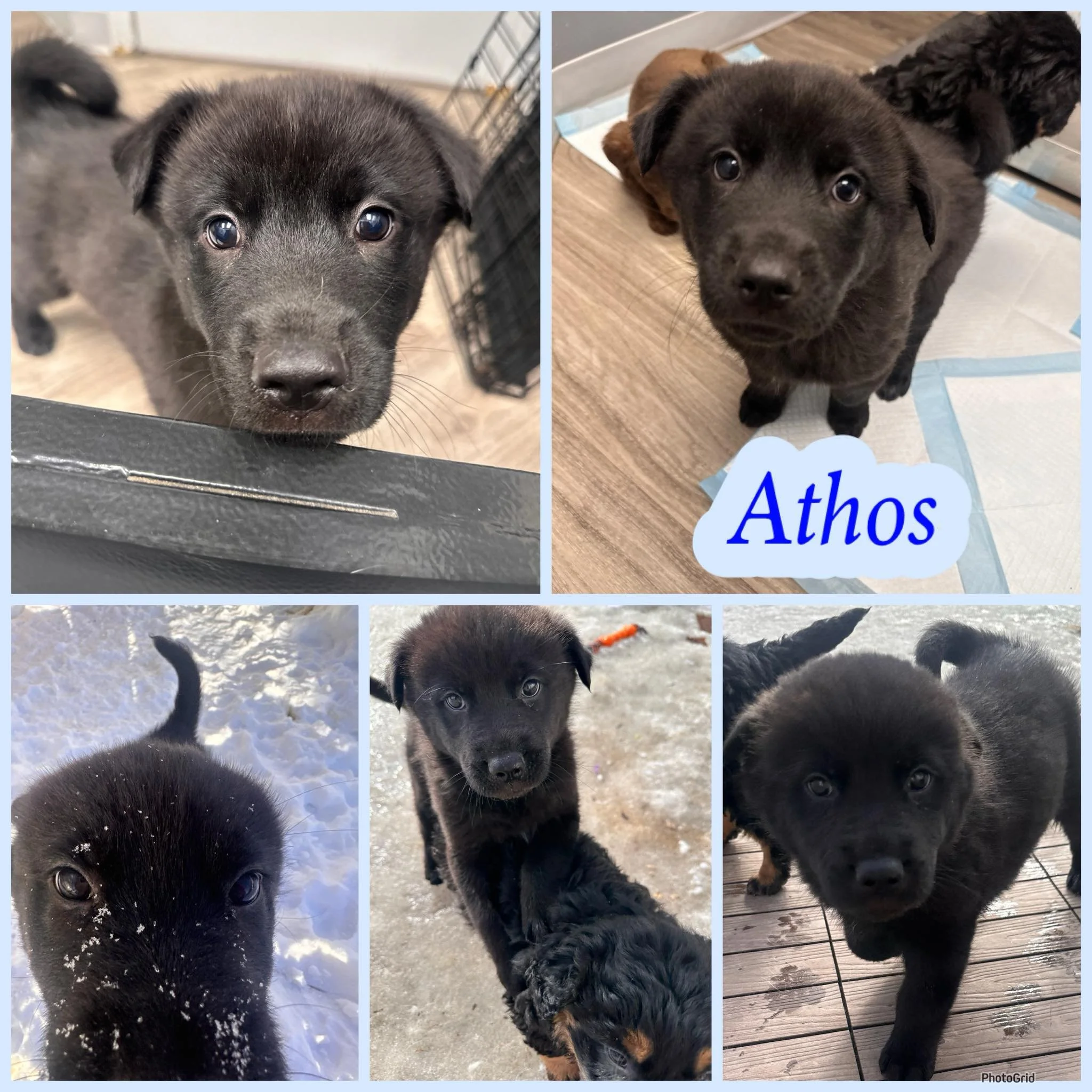 Personality: Athos LOVES to be outside, loves to run around, play in the snow and just explore. He is quite entertaining to watch run through snow.